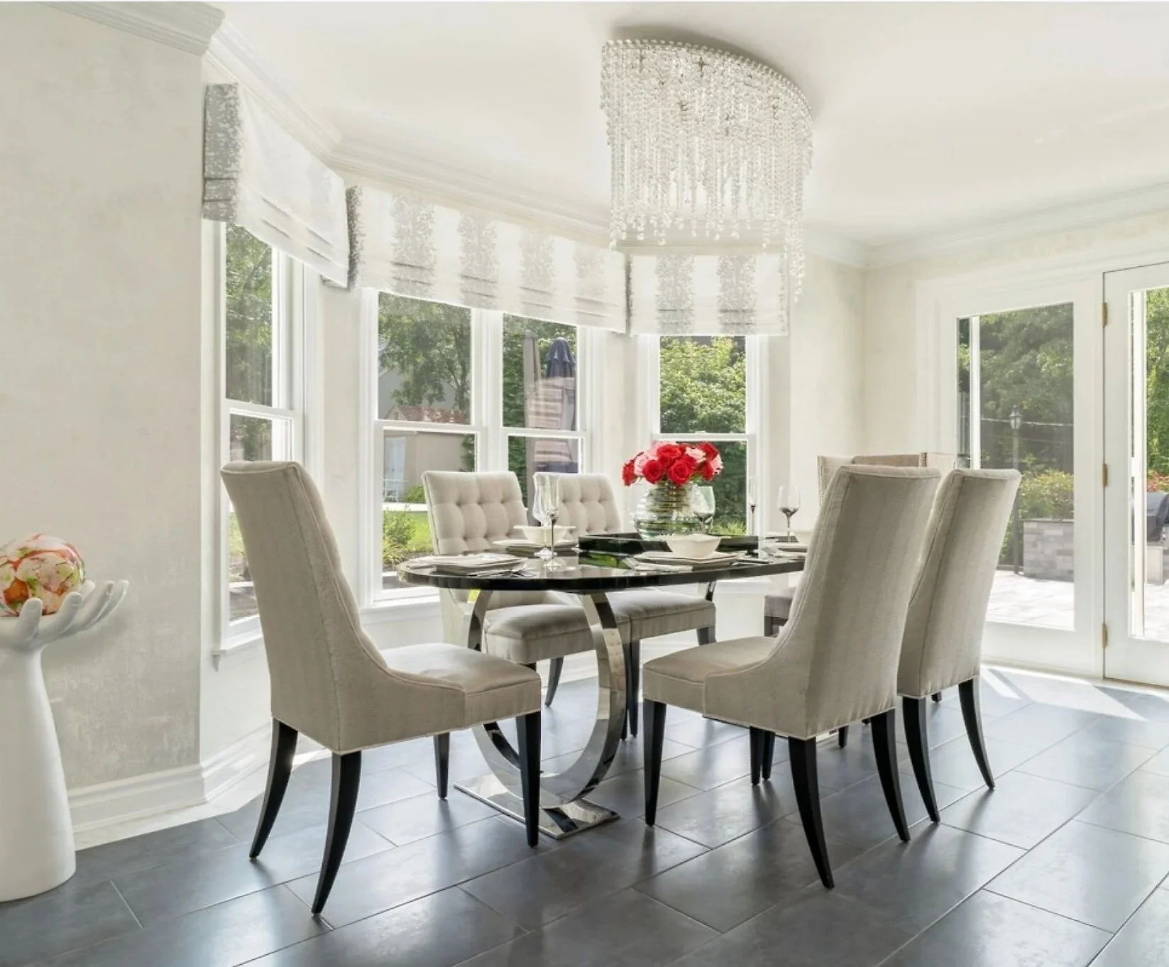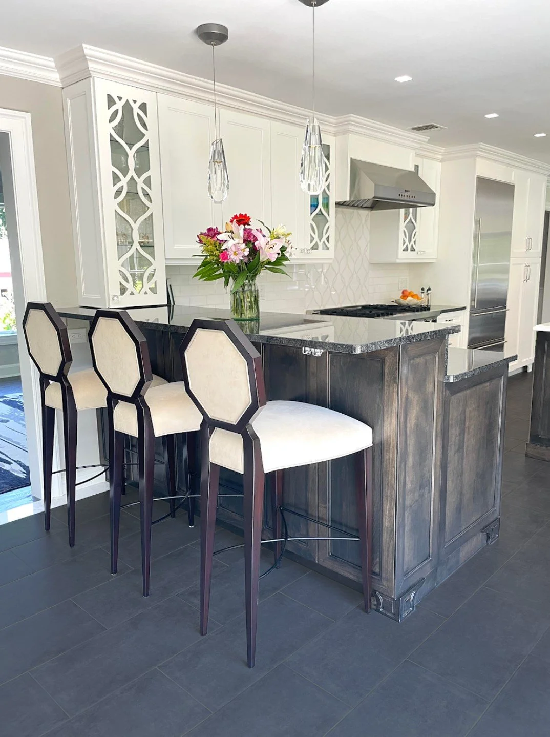 This full-home transformation is a symphony of sophistication and comfort, where every room tells a story of elevated living. The kitchen blends white cabinetry with rich quartzite surfaces, anchored by a welcoming island that invites gathering and conversation. In the living spaces, plush seating and curated accents create an atmosphere of relaxed elegance. The bedrooms offer serene retreats wrapped in soft neutrals and luxe finishes while the bathrooms balance timeless charm with modern utility.