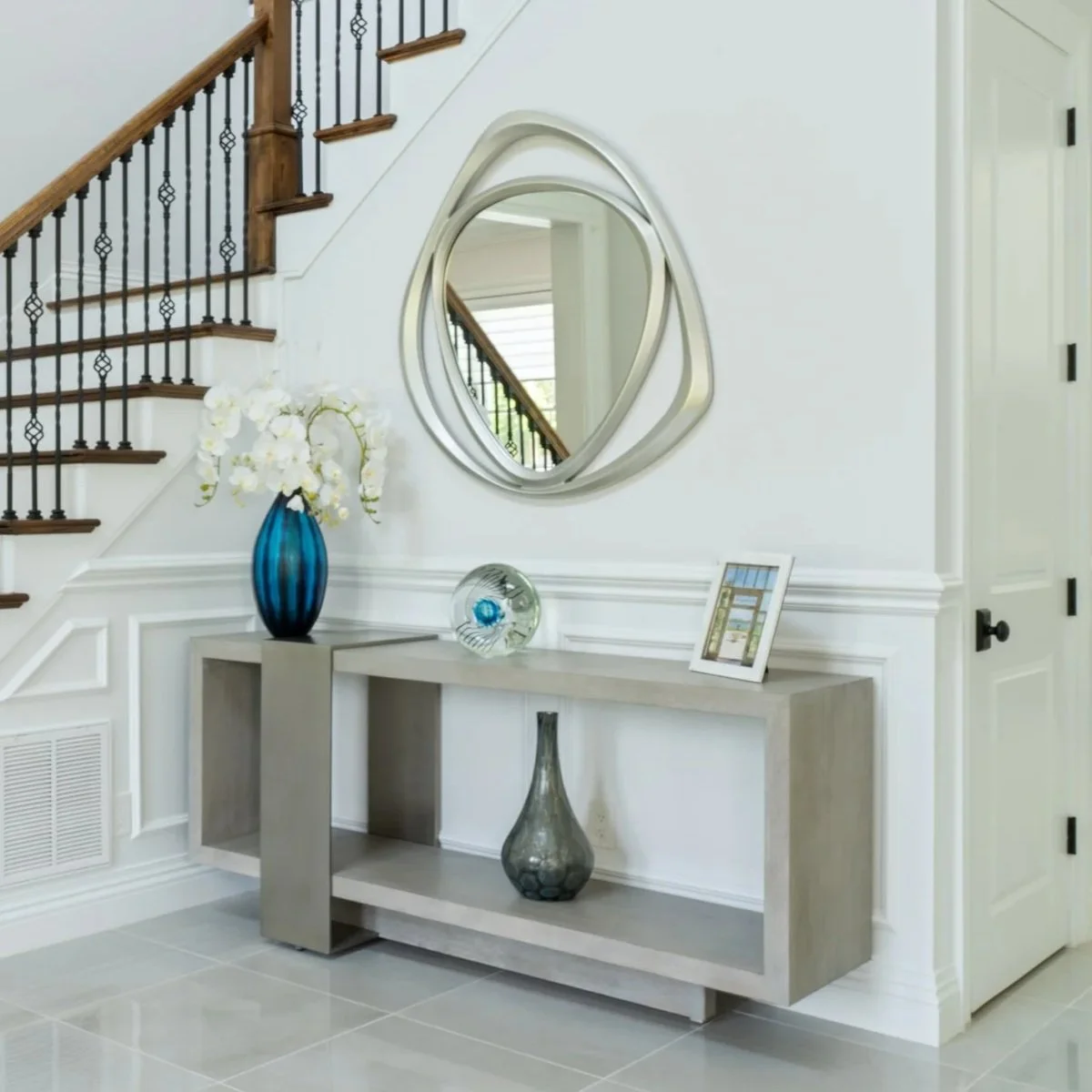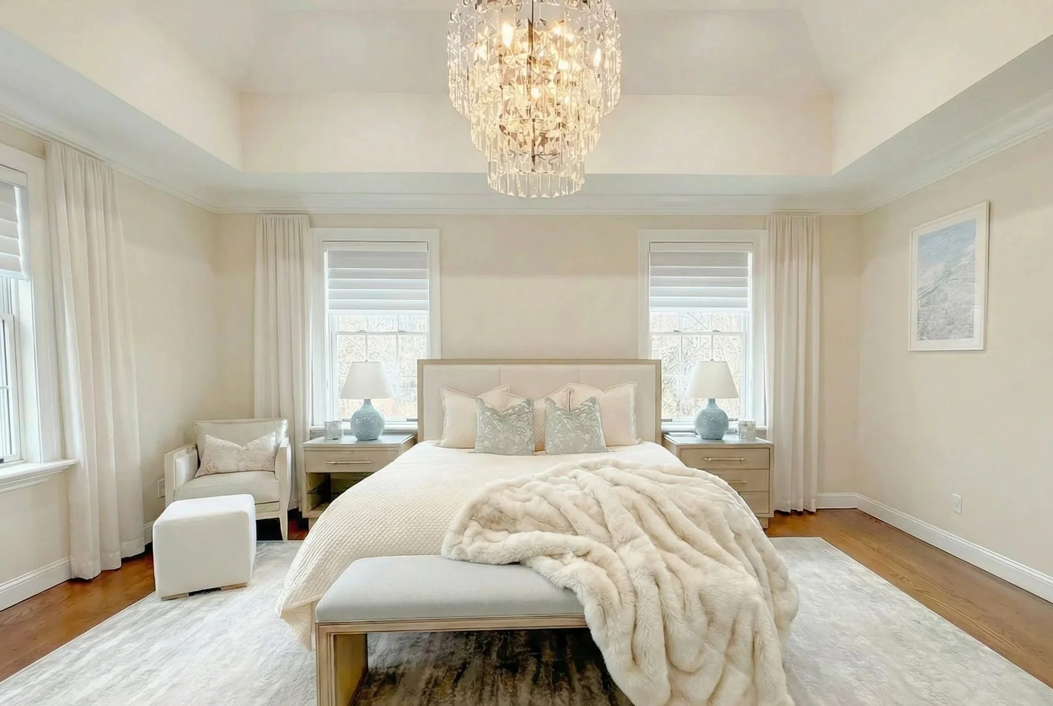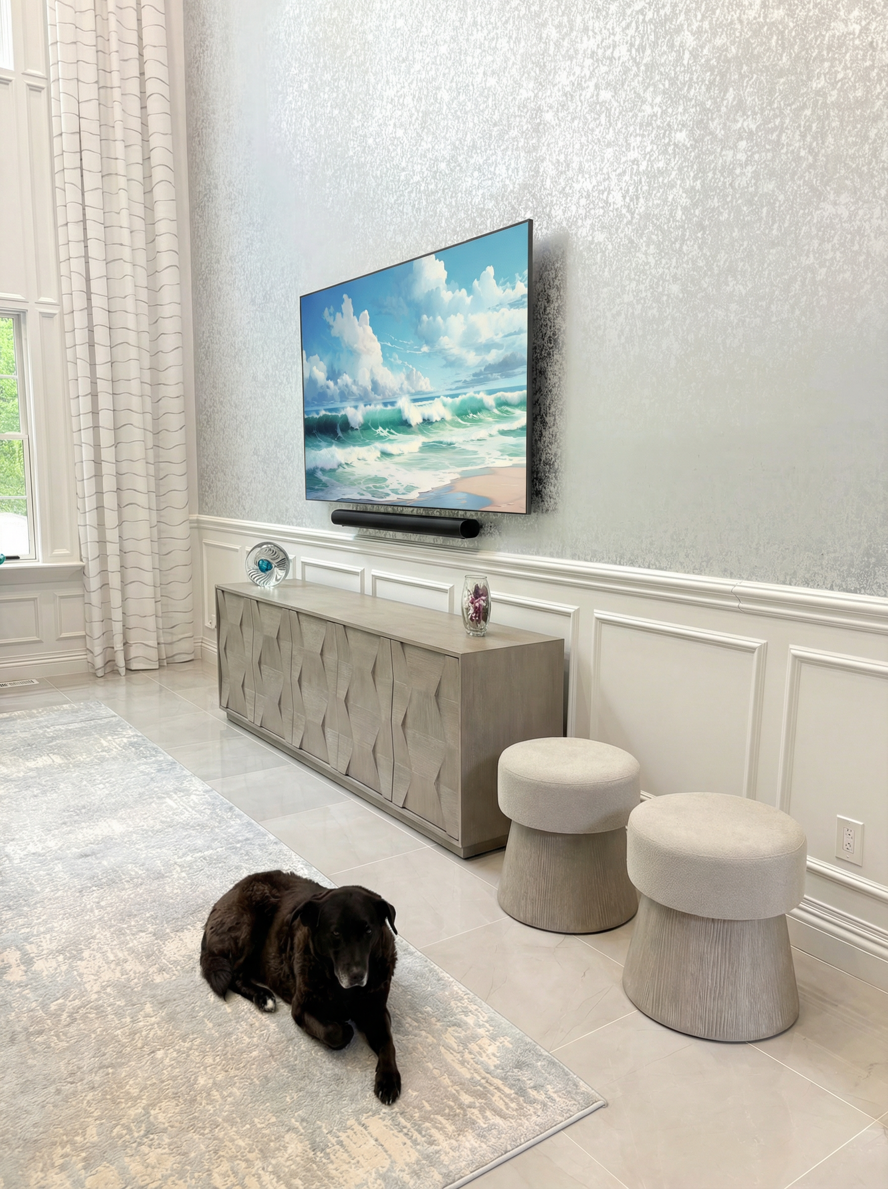This home is a portrait of luxury and tailored elegance. At the heart of this full-home renovation is the dining room with a bespoke wine bar—an illuminated showcase of curated bottles and glassware framed by glass doors and tailored millwork. It’s a statement of refinement and celebration, anchoring the space with both function and flair. Every detail of this home was designed to evoke warmth, sophistication, and timeless beauty. Stay tuned—the transformation continues with the reveal of the basement, soon to become the ultimate entertaining space complete with a full bar and cigar lounge.